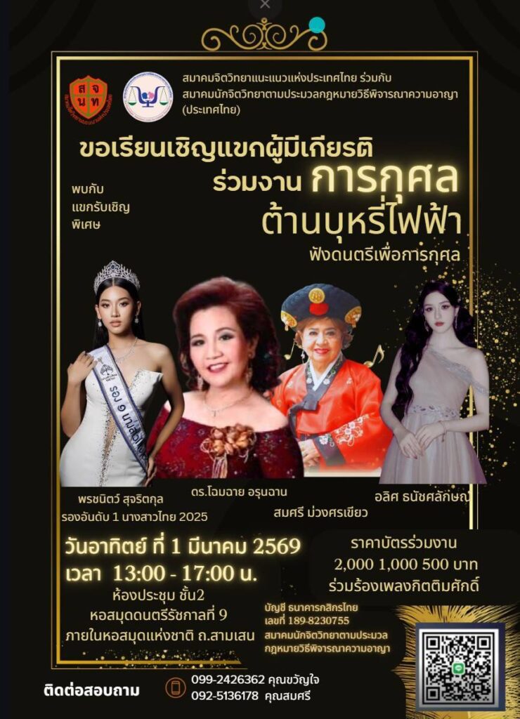 🥳🎉Happy New year 2025 🎉🥳 สมาคมจิตวิทยาแนะแนวแห่งประเทศไทย โดย ฝ่ายวิชาการ ขอส่งความสุขแบ่งปันความรู้ เพื่อมอบเป็นของขวัญปีใหม่แก่ท่านสมาชิกสมาคมฯและครูแนะแนว ตลอดจนผู้ที่สนใจทุกท่าน ขอเชิญชวนเข้าร่วมการอบรมออนไลน์ (..ฟรี..รับจำนวนจำกัด) หัวข้อ “BURN OUT: เติมพลัง…ในวันที่หมดไฟ” 🧑⚕️วิทยากรโดย รศ.ดร.มานิกา วิเศษสาธร ภาควิชาจิตวิทยา คณะศึกษาศาสตร์ มหาวิทยาลัยรามคำแหง 📅 วันเสาร์ที่ 18 มกราคม 2568 เวลา 09.00-12.00 น. 📌 ผ่านทาง ระบบออนไลน์ ZOOM ลงทะเบียน👇👇 https://forms.gle/wdfckVqKUutkPWDd7